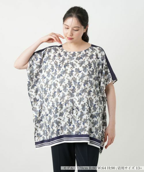 繊細なタッチで描かれたペイズリー柄が、ほんのりオリエンタルなムードまとわせるフレアブラウス。軽やかな生地感とすとんと落ちるシルエットが魅力です。ウエスト部分にはドロストコードを施し、シルエットに変化をつけられるのもポイント。ナチュラルなブラウジングで、着こなしにリズムを加えます。裾はサイドスリット入りで、動きやすさと抜け感をプラス。一枚で存在感がありながら、リラックスした着心地も叶える着回し力に優れたアイテムです。