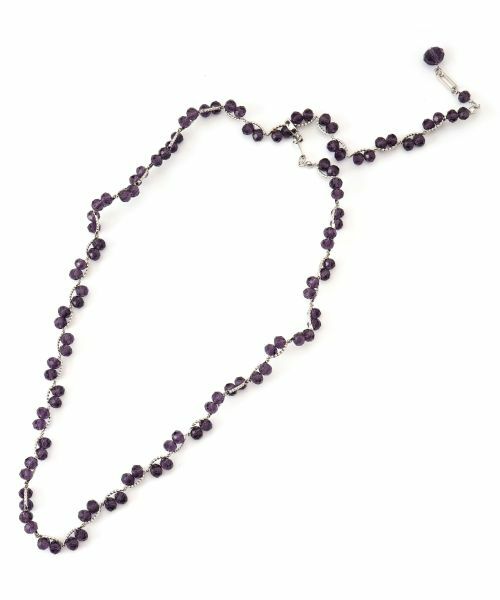 ガラスと真ちゅうを組み合わせた、ラリエットタイプのネックレス。キラキラと華やかさを添え、胸元を美しく彩ります。普段使いはもちろん、パーティーシーンなどにもおすすめです。※定価(税込)は、2025年6月27日のセール開始前の店舗における販売価格です。