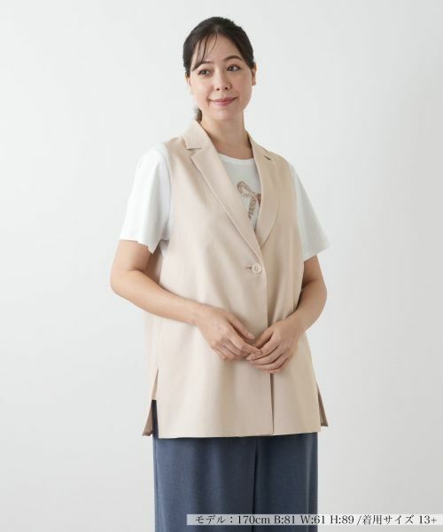 カットソーやブラウスの上にさっと羽織るだけで、大人の品格を添えてくれるラペルドベスト。きちんと感のあるノッチドラペルが顔周りをシャープに見せ、スタイリングを引き締めます。カットソーやニットの上に重ねるだけで、普段の着こなしがワンランクアップ。ワンピースに羽織ればオフィスにも対応できるきちんとスタイルに。薄手で軽やかな着心地なので、カーディガン感覚で気軽に羽織れます。初秋のレイヤードスタイルにぴったりのアイテムです。