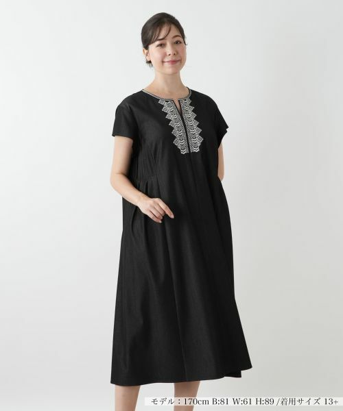 一枚で旬のコーディネートが完成する、大人のためのエスニック刺繍のフレアワンピース。胸元にあしらった民族調の緻密な刺繍が、顔周りをぱっと華やかに見せてくれる主役級のアイテム。アクセサリー要らずでさっと纏うだけでコーディネートが決まります。身体のラインを拾わずに、すとんと落ちる美しいフレアシルエットが、すっきりとした大人の佇まいを演出。上品な風合いながら、伸縮性のある素材で、一日中リラックスして過ごせる快適な着心地も魅力です。バックファスナーにより開閉が可能。