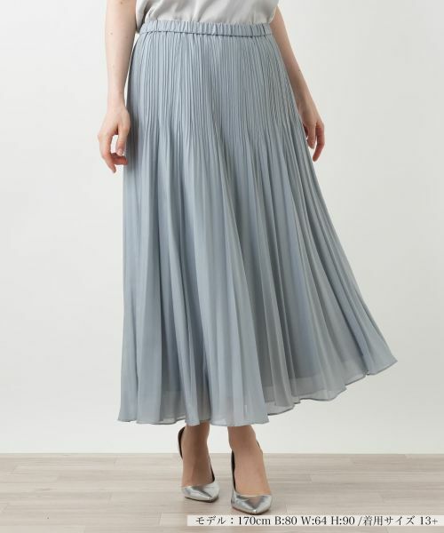 繊細なプリーツが生み出す、美しい陰影と豊かな表情が魅力のロングプリーツスカート。歩くたびに空気をはらんで優雅に揺れ、何気ない所作まで女性らしく演出します。ウエストは締め付け感のない総ゴム仕様で、見た目のエレガントさとは裏腹に、一日中ストレスフリーな穿き心地を実感できます。気になるヒップや脚のラインを拾わず、すっきりと見せてくれるのも嬉しいポイントです。やや薄手の軽やかな生地ながらしっかりとした裏地付きで透けの心配もなく、ご自宅で手洗いできるのでお手入れも簡単です。