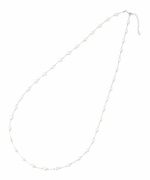 柔らかな輝きを放つコットンパールと美しいカッティングのビジューを、等間隔にリズミカルにあしらった上品なロングネックレス。アンティークのような温かみのある独特の風合いが魅力です。シンプルなTシャツやニットに合わせれば、日常のスタイルをぐっと格上げ。ワンピースやブラウスに添えれば、結婚式などのパーティーシーンでも活躍します。