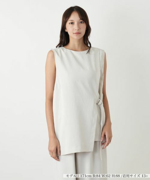 美しいカッティングとアシンメトリーなデザインが洗練されたスタイルを叶えるベスト。ベルトでシルエットに変化をつければ、着こなしの幅もぐっと広がります。やや薄手の生地は軽やかで、適度な透け感があるため、レイヤードルックをより一層楽しめます。同素材のアイテムと合わせたセットアップで、よりモードなコーディネートもおすすめ。Tシャツやブラウスに重ねるだけで、いつもの装いがワンランク上のこなれた印象に変わります。ご自宅で手洗い可能なのでお手入れも簡単。