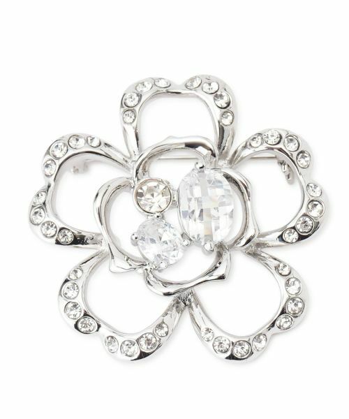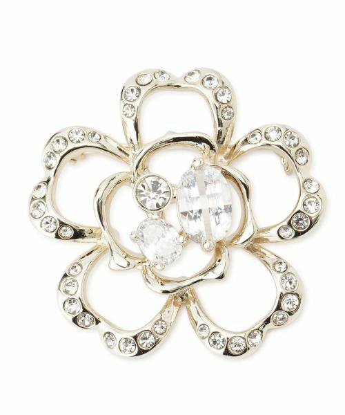 ガラスパーツとキュービックジルコニアが贅沢に配された、インパクト溢れるデザインのフラワーブローチ。中央には異なる趣の美しいカッティングが施された大粒のビジューが輝きます。シンプルなジャケットやワンピースに添えるだけで、洗練されたリュクスな印象に。卒業式や入学式、結婚式といったフォーマルなシーンでのスーツやドレスの胸元を格上げするのはもちろん、普段使いのシンプルなニットやブラウスにプラスするのもおすすめです。