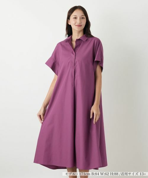 NEMIKAのシャツワンピースは、柔らかな素材感と、ゆったりとしたシルエットが特徴です。襟元は開襟シャツのようなデザインで、顔周りをすっきりと見せます。袖は、ふんわりとしたパフスリーブで、女性らしいフェミニンな印象をプラス。丈はミモレ丈で、一枚でさらりと着ても様になり、リラックス感がありながらも上品な着こなしを叶えます。カジュアルなシーンはもちろん、ちょっとしたお出かけにも活躍する、洗えて着回し力の高いアイテムです。