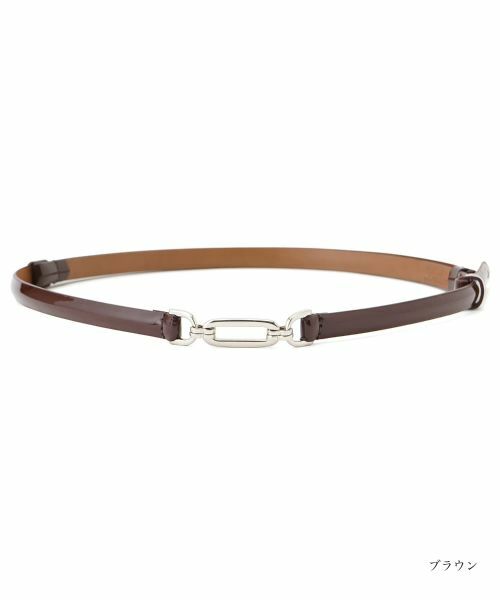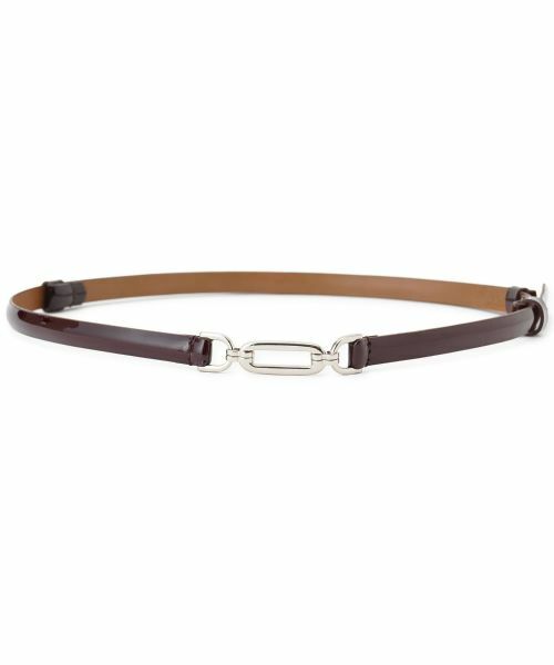 これからの季節のスタイリングに、洗練された個性を添えるナローベルト。モダンなチェーンモチーフのバックルが光り、ウエストマークするだけで旬の表情を演出。表側は上質な牛革を使用しており、艶やかな光沢と使うほどに馴染む質感が魅力。裏側は合成皮革で仕立てられているため扱いやすく、デイリーに気兼ねなくお使いいただけます。ワンピースやチュニックのウエストマークにはもちろん、シンプルなパンツやスカートに合わせれば、着こなし全体を引き締める効果も。細身のデザインなので、主張しすぎずに上品なアクセントとして活躍します。
