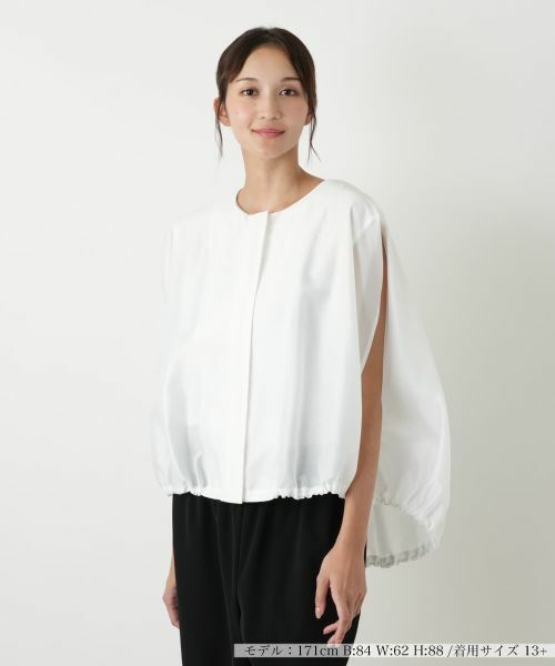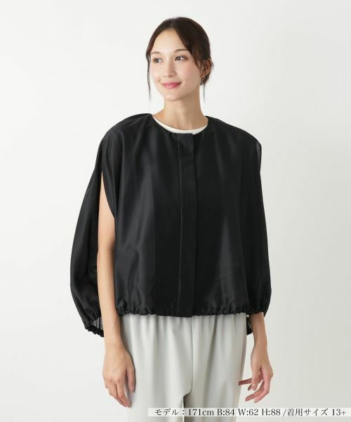 こなれ感のあるデザインが魅力のスリットスリーブのマントジャケット。薄手で透け感のある素材が風を通し、動くたびに揺れるシルエットが女性らしさを引き立てます。ゆったりとしたマント風のデザインに裾のドローコードがアクセントとなり、好みのシルエットに調節可能。袖口のスリットは腕の動きを妨げず、抜け感のある着こなしを叶えます。シンプルな仕上がりながら、上品な質感と軽やかな着心地がデイリーからきれいめシーンまで幅広く対応。季節の変わり目にも重宝する一枚です。