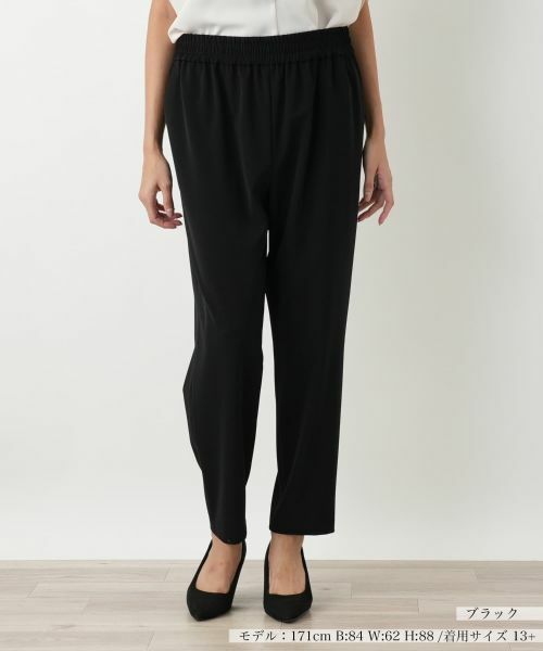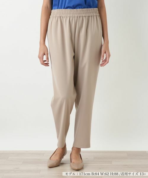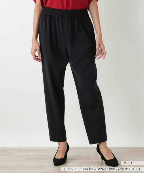 すっきりとしたシルエットが美しいテーパードパンツ。やや薄手で軽やかな生地は、初秋の気候にぴったりで、抜け感のある着こなしを叶えます。伸縮性があり動きやすく、ウエストはゴムベルト仕様で快適なフィット感を実現。シンプルながらポケット付きで実用性も十分。オフィスからデイリーまで幅広く活躍し、どんなトップスにも合わせやすいアイテムです。軽やかな素材感で季節の変わり目にも重宝します。