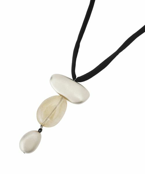 メタリックな艶消しストーン調パーツとクリアストーン調パーツをバランスよく繋げたネックレス。バックネックでリボンを結ぶ留め具のない仕様なので、ネックラインの開きに合わせて長さの調節は自由自在。ちょっぴり個性的なアクセサリー使いが楽しめます。