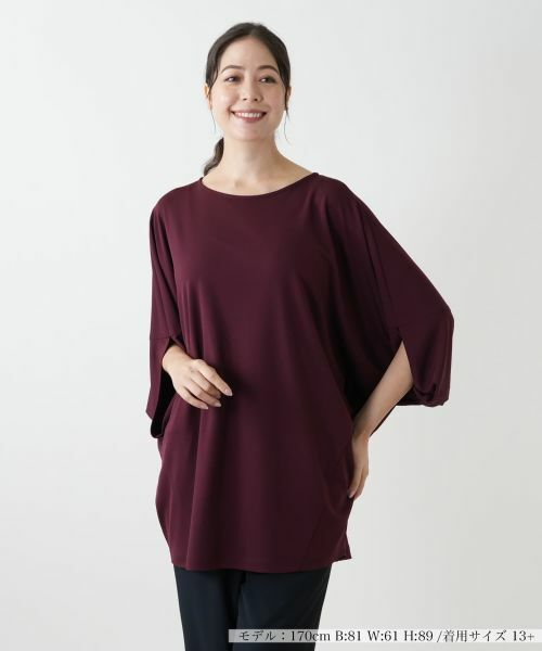 ゆったりとしたシルエットと、落ち感のある素材が魅力のドルマンスリーブブラウス。深みのあるカラーが、秋の装いに上品な彩りを添えます。やや薄手の生地は軽やかで、動くたびに柔らかく揺れるシルエットが女性らしさを引き立てます。首元は程よく開いたボートネック仕様で、顔まわりをすっきりと見せながら抜け感を演出。パンツと合わせてモードに、スカートと合わせてフェミニンにと、幅広いスタイリングに活躍します。ウォッシャブル素材でお手入れも簡単。オン・オフ問わず長く愛用できる一着です。