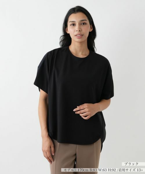 ふんわりとしたバルーンシルエットが完成するカットソー。後ろ身頃にボリュームを持たせ、丸みのあるバックスタイルを演出。袖口の後ろ側だけにゴムを配し、袖にたまり感を作ることで、計算されたフォルムがさりげなく個性を引き立てます。伸縮性のある生地で着心地も快適。すっきりとしたパンツと合わせるだけで、メリハリの効いた旬のコーディネートが楽しめます。