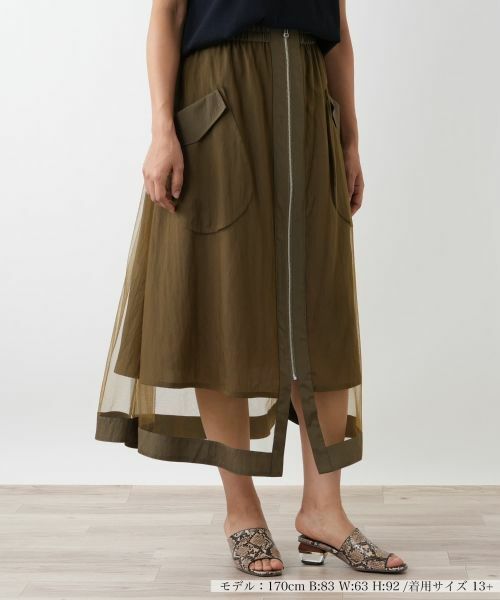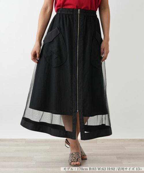 繊細なチュールに、スポーティーなジップを効かせた、甘辛ミックスなレイヤードスカート。透け感のあるチュールを重ねた、奥行きのあるデザインが着こなしをモードに格上げします。フロントのロングジップがシャープなアクセントと縦長効果をプラス。ウエストはゴム仕様で穿き心地も快適です。シンプルなトップスを合わせるだけで、トレンド感溢れるスタイルが完成する注目のアイテムです。