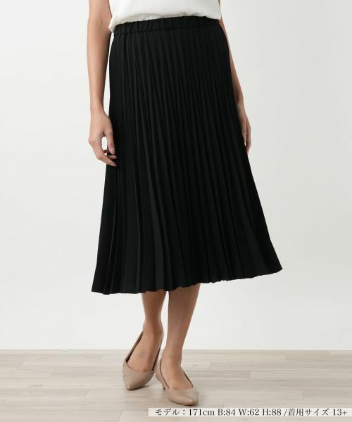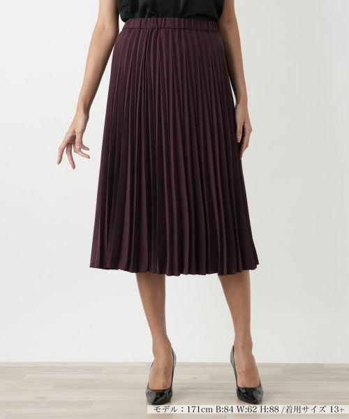 繊細なプリーツがしなやかに揺れる、上品な佇まいのスカート。縦ラインを強調するプリーツが広がりすぎず、すっきりとした美しいシルエットを演出。ウエストはゴム仕様なので、見た目のエレガントさとは裏腹に穿き心地はストレスフリー。同素材のジャケットと合わせれば、きちんと感のあるセットアップも楽しめます。オンオフ問わず着回せる、大人のための華やかな一枚です。