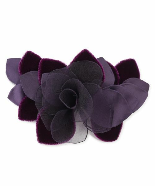 セレモニーの装いを、より一層華やかに引き立てるエレガントなコサージュ。ベルベットのような光沢のある花びらと、透け感のあるオーガンジーの花びらを丁寧に重ね、立体感豊かに仕上げました。深みのあるシックなカラーが、大人の女性らしい上品さと落ち着きを演出。ジャケットやワンピースの胸元に添えるだけで、コーディネートがぐっと格調高い印象になります。大切な一日を美しく彩る、とっておきのアイテムです。