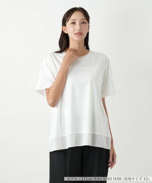 上質な綿100%素材で仕立てた、肌触り心地よい半袖カットソー。シンプルな無地とノーカラーの丸首デザインで、インナーとして幅広いコーディネートに活躍します。ご自宅で手洗い可能なウォッシャブル仕様で、日々のお手入れも簡単です。上質な素材感が、装いに品格をもたらします。※商品の色味は、撮影場所や光のあたり具合、お客様のお使いの機器により色味が違って見える場合がございます。予めご了承ください。手洗い可漂白不可タンブル乾燥不可つり干し(日陰)アイロン低温120℃まで石油系溶剤ドライクリーニング弱ウェットクリーニング(弱い処理)