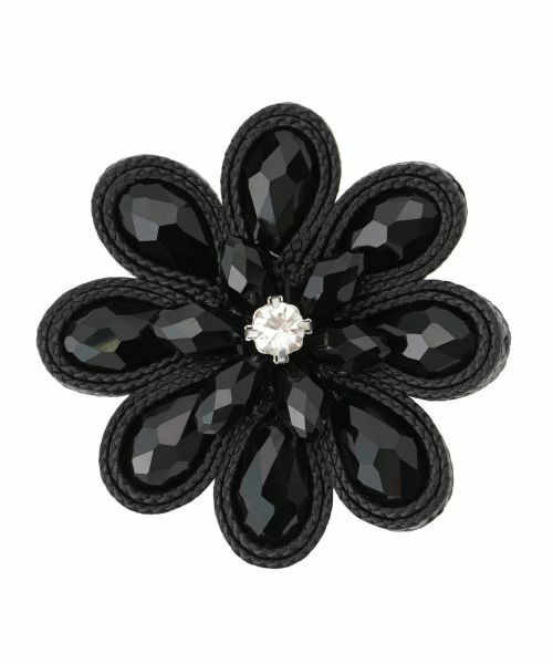 手仕事の温もりを感じさせる、立体的なフラワーモチーフブローチ。煌めくカットビジューの花びらをコードで丁寧に縁取り、豊かな表情に仕上げました。中央で輝く一粒のクリアストーンが、シックなデザインに上品な華やかさをプラス。ジャケットやコートの襟元、無地のワンピースに添えるだけで、装いをぐっとクラスアップさせてくれます。ストール留めとしてなど、アレンジ次第で様々な使い方が楽しめるのも魅力です。