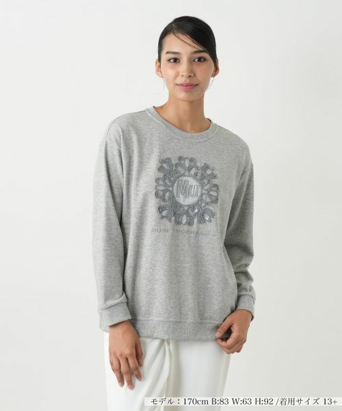 刺繍やスパンコール、アップリケなど、様々なテクニックを駆使した胸元のサークルモチーフが目を惹く、クルーネックプルオーバー。肌触りの良いコットン素材なので、Tシャツのようにリラックスして着用いただけます。華やかな見た目ながら、ご自宅で手洗いできるイージーケアな点も嬉しいポイント。一枚でコーディネートの主役になり、秋のカジュアルスタイルをぐっとクラスアップさせてくれます。