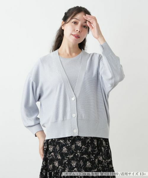 まるで夜空の星屑をちりばめたように、繊細な輝きを放つVネックカーディガン。スパンコールを練り込んだ糸で編み立てることで、派手すぎず、上品かつ奥行きのある煌めきを実現しました。ゆったりとしたリラクシーなシルエットで、軽やかな羽織りとしてはもちろん、ボタンを留めてプルオーバー風の着こなしも素敵。いつものコーディネートにプラスするだけで、ぐっと華やかな印象に仕上げてくれる一枚です。