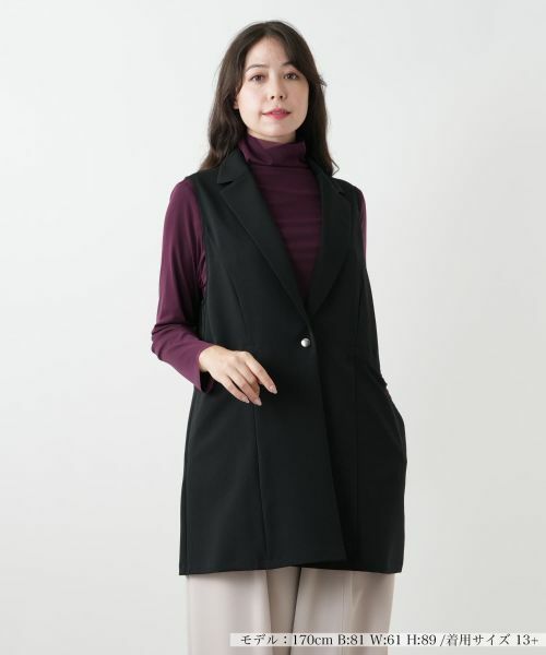 さっと羽織るだけでいつものコーディネートをハンサムに格上げしてくれる、テーラードタイプのロングベスト。ウエストのドローコードを絞れば、メリハリが生まれ、女性らしいシルエットにアレンジ可能。そのまま着流せば、リラックスした中にも軽やかさのある絶妙なシルエットで楽しめます。伸縮性のある素材でカーディガンのように気軽に羽織れるのも魅力。オンオフ問わず活躍する、秋のレイヤードスタイルに欠かせない一着です。