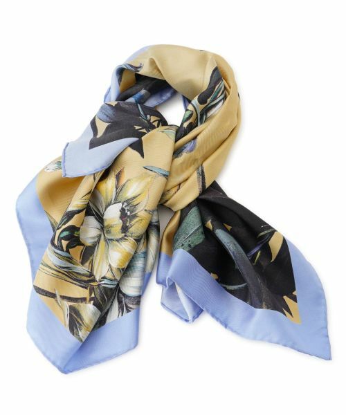 イタリアGENTILI MOSCONI(ジェンティリ モスコーニ)のシルク系スカーフ。フラワーベースの柄デザインで、上品な雰囲気を演出します。コーディネートに華やかさをプラスしてくれるアイテムです。