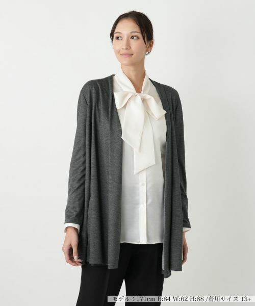 ------------------------------------着用シーズン:秋伸縮性:あり透け感:なしポケット:あり生地の厚さ:やや薄手-------------------------------------リラックス羽織ブラウスリラックス感のある前開きデザインの羽織ブラウスです。ジャケットのように軽く羽織れる、軽やかな着心地が魅力。再生繊維(セルロース)素材が、さらりとした肌触りを提供します。秋のレイヤードスタイルにおすすめです。※商品の色味は、撮影場所や光のあたり具合、お客様のお使いの機器により色味が違って見える場合がございます。予めご了承ください。■□Leilian WHITE LABEL(ホワイトレーベル)・・・実力派デザイナーとの協業で、ベーシックな商品によりトレンド性を取り入れたブランドです。□■家庭洗濯不可漂白不可タンブル乾燥不可アイロン低温160℃まですべての溶剤でドライクリーニング弱ウェットクリーニング不可