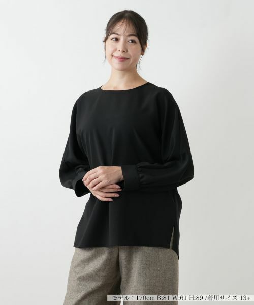 さらりとした着心地が魅力のブラウスです。ポリエステル100%の上質な素材感は、仕事着としても最適。ノーカラーデザインと、洗練されたシルエットが、上品な印象を与えます。