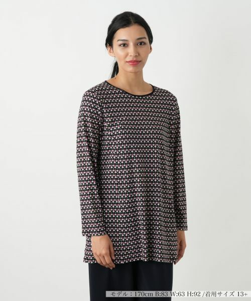 表情豊かな柄が魅力の、ノーカラーブラウス。コットン100%の素材は、肌触りも心地よく、柔らかな風合いが日常に寄り添います。パワーネット機能も兼ね備え、快適な着心地をサポート。ノーカラーの丸首デザインは、デコルテラインをすっきりと見せ、合わせるアクセサリーも引き立てます。ご自宅で手洗いできるウォッシャブル仕様で、日常のお手入れも簡単。一枚で着ても華やかな存在感を放ち、ジャケットやカーディガンのインナーとしても上品に映えます。秋のコーディネートに軽やかなアクセントを添える、着回し力の高い一枚です。