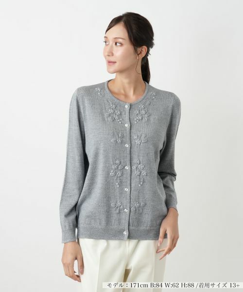 イタリアのニットファクトリーメーカー「CORSINI & PROTI」が手がける、上質で華やかなカーディガン。イタリア「ゼニアバルファ」社の良質な糸で編み上げた12ゲージの天竺ベースに、小さなクロスステッチが施されています。手作業で丁寧に花柄の刺繍と輝きのある装飾があしらわれ、CORSINI & PROTIならではの繊細な美しさが際立つ一着です。心地よい肌触りと、細部にまでこだわり抜かれたクラフトマンシップが融合した、大人の女性にふさわしい逸品。秋の装いを彩る主役として、特別なスタイルを演出いたします。