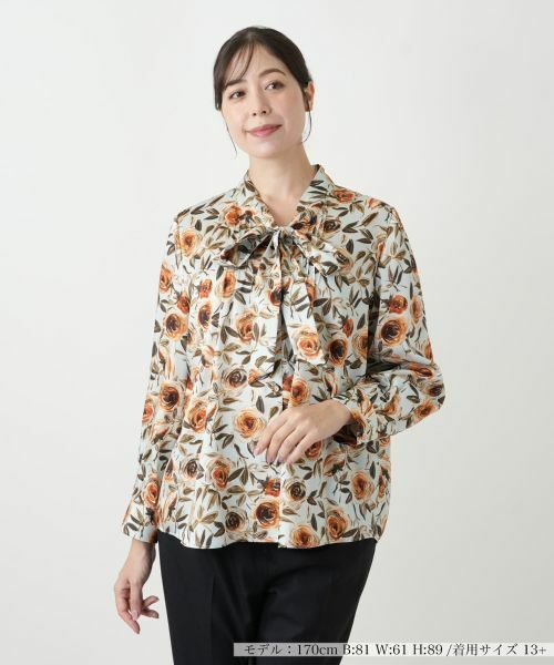 油絵のようなタッチのローズが描かれた、美しいプリントブラウス。ROCHASの今季テーマのひとつである冬の庭園を意識したデザインです。ラベンダーカラーが目を惹くフラワープリントは、細部にまでこだわった繊細な縁取りが施され、奥行きのある表情を生み出しています。しわが目立ちにくいポリエステルデシン素材で、ご自宅で手洗いできるウォッシャブル仕様です。上品で華やかな一枚で、特別な日のお出かけはもちろん、普段の装いを格上げします。