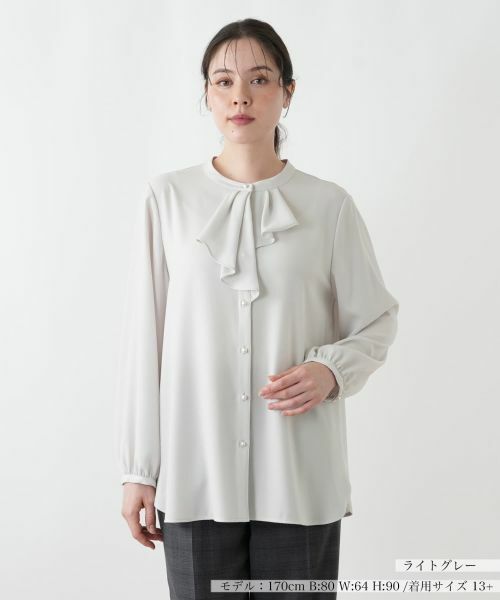 上品な光沢と美しいドレープが魅力の、スタンドカラーブラウス。高品質なポリエステル素材を使用しており、しなやかな肌触りと適度なハリ感を兼ね備えています。長袖と品の良いスタンドカラーが、洗練された大人の女性の印象を与え、首元をすっきりと見せてくれます。ご自宅で手洗いできるウォッシャブル仕様で、日常のお手入れも簡単。シンプルな無地デザインなので、柄物のスカートやジャケットとも好相性で、着回し力も抜群です。オフィスシーンから、ちょっとしたお集まりまで、幅広い場面で活躍する汎用性の高い一枚です。秋のコーディネートに品格と快適さを添える、こだわりのアイテムです。