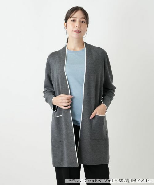 毛を100%使用した、暖かく柔らかな肌触りのカーディガン。シンプルな無地デザインは、どんなインナーとも合わせやすく、上品さを保ちながら幅広いコーディネートにお楽しみいただけます。特徴的な襟のデザインは、首元をすっきりと見せ、洗練された印象を与えます。季節の変わり目の羽織りとしてはもちろん、トップスとして一枚で着用するのもおすすめです。秋のデイリースタイルから、きれいめカジュアルまで、様々なシーンで活躍する汎用性の高い一枚です。