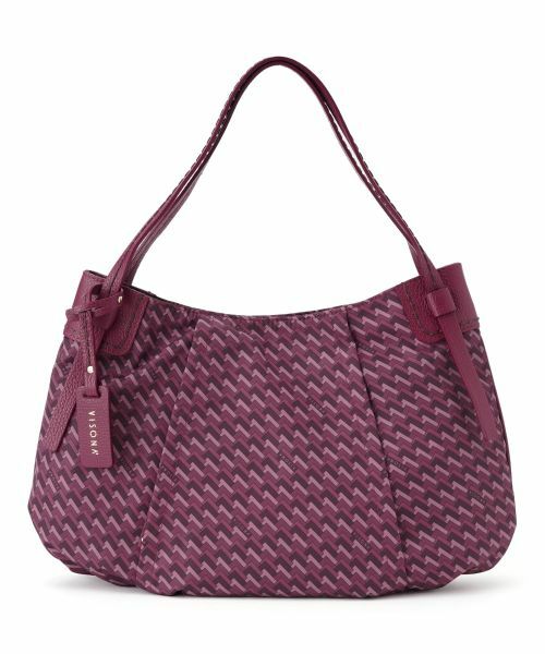 イタリアのバッグブランド「VISONA」とレリアンのコラボレーションで誕生したハンドバッグ。丸みのあるフォルムが特徴で、上品な幾何学模様が秋の装いに映え、レザー部分に施されたハンド風ステッチが洗練されたアクセントとなっています。軽さに優れた素材で、持ち運びも快適。開口部はファスナー仕様で、ポケットや仕切りも充実しており、デザイン性と機能性を兼ね備えています。日常使いはもちろん、お食事会や特別な日のお出かけにもぴったりの汎用性の高い一点です。