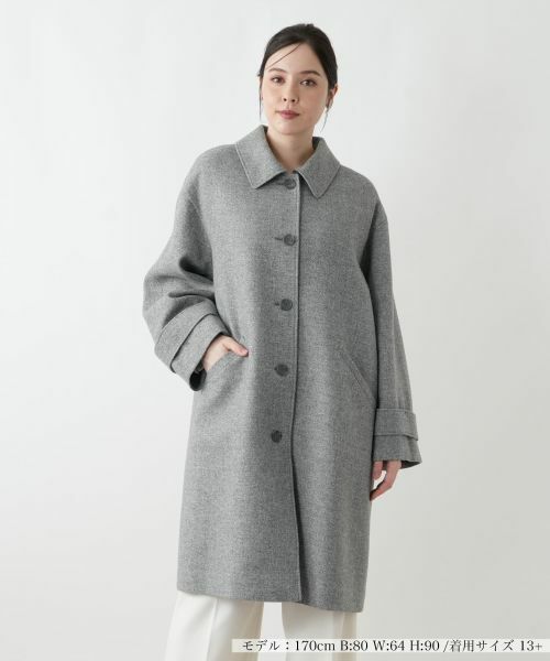 深喜毛織が手がける、ショールカラーコート。毛を主体に麻をブレンドした素材は、上品な光沢感と柔らかな風合いが特徴です。ショールカラーのデザインが、顔周りを優しく包み込み、洗練された印象を与えます。裏地にはキュプラを使用し、滑らかな袖通しで快適な着心地。シンプルな無地デザインは、様々なインナーやボトムスと合わせやすく、幅広いコーディネートにお楽しみいただけます。冬のデイリースタイルから、きれいめなオフィススタイルまで幅広く活躍する汎用性の高い一枚です。