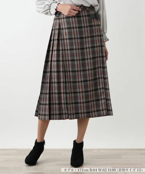 シックな色合いとプリーツデザインが魅力のスカート。ポリエステルとレーヨンをブレンドした素材は、しなやかな落ち感と、美しさを両立。ウエストはゴム入りで、快適な穿き心地ながらも、トップスをインするスタイルも美しく決まります。牛革の飾り部分がさりげないアクセントとなり、洗練された印象をプラス。裏地付きで、安心してご着用いただけます。秋のフォーマルなシーンから、大切な方とのお集まりまで、幅広い場面で活躍する汎用性の高い一枚です。