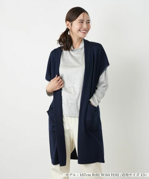 毛を主体とした素材にポリエステル、アクリル、ナイロンをブレンドした、暖かく柔らかな肌触りのニットロングベスト。シンプルな無地デザインなので、どんなインナーとも合わせやすく、上品さを保ちながら幅広いコーディネートにお楽しみいただけます。ロング丈は体型カバーしつつ、縦のラインを強調し、すっきりとした印象を与えます。秋の始まりから冬にかけて、軽やかな羽織りとして、またコートのインナーとして、長くご愛用いただけるでしょう。大人の女性の多様なライフスタイルに寄り添う、快適な一枚です。