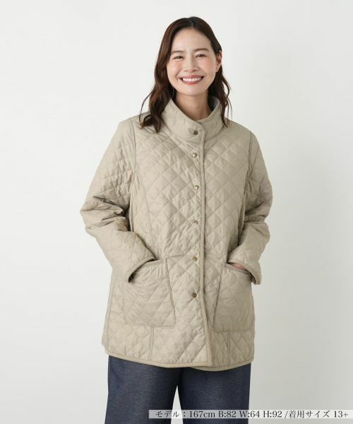 リバーシブルデザインの中わたキルティングコートです。片面はクラシカルな小柄チェック、もう片面はシンプルな無地で、異なる表情が楽しめる一枚。中わた入りのキルティングは、軽やかながらも暖かく、肌寒い季節の防寒着として最適です。スタンドカラーのデザインは首元を暖かく包み込み、すっきりとした印象を与えます。袖口や裾、前立てにあしらわれたパイピングがデザインのアクセント。ボタンで開閉できる仕様で、羽織りとしてもトップスとしても活躍します。カジュアルスタイルからきれいめスタイルまで、幅広いコーディネートに対応する汎用性の高いアイテムです。