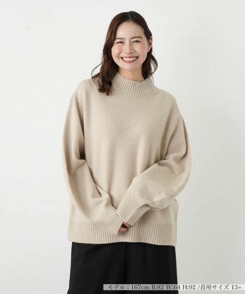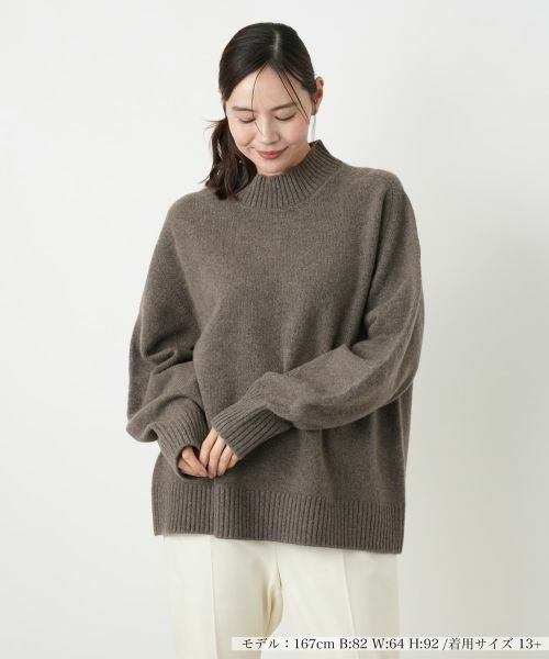 中国内モンゴル産の貴重なホワイトカシミヤを配合し、高品質なオーストラリア産メリノ種のラムの柔らかい毛を混紡したセーターです。豊かなふくらみと、非常に軽く柔らかな肌触り、そして包み込むような穏やかな色合いが魅力。ホールガーメントで編み立てることで、縫い代のごろつきがなく、ストレスフリーな着心地を実現しました。袖の立体的な膨らみや、センターバックにスリットを入れた快適なハイネックデザインが、洗練された印象を演出します。細部までこだわり抜いた、大人の女性にふさわしい一枚です。