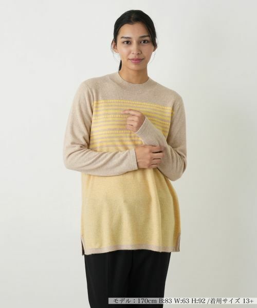 ------------------------------------着用シーズン:冬 伸縮性:あり透け感:なしポケット:なし生地の厚さ:やや厚手お取扱い方法:ウォッシャブル(手洗い可)裏地:なし-------------------------------------編地の変化によって2種類のボーダー柄を表現した、ボトルネックニットです。ご自宅で手洗いできるウォッシャブル仕様で、いつでも清潔にお召しいただけます。胸下から緩やかに広がるデザインは、ゆったりとした着心地ながらも、上品なシルエットを演出。温かなぬくもりと、洗練されたデザインが、冬の日常を豊かに彩る一枚です。※商品の色味は、撮影場所や光のあたり具合、お客様のお使いの機器により色味が違って見える場合がございます。予めご了承ください。【SORAGE(ソラージュ)掲載商品】手洗い可漂白不可タンブル乾燥不可平干し(日陰)アイロン低温160℃まで石油系溶剤ドライクリーニング弱ウェットクリーニング(弱い処理)