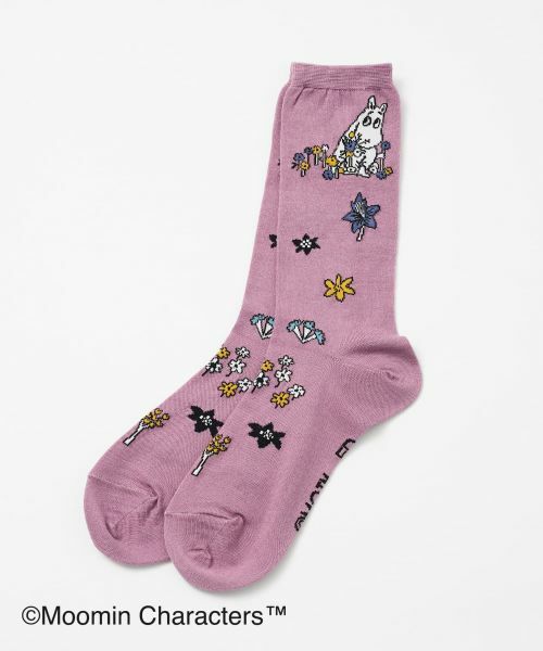 ムーミントロールと数種類の花モチーフが織りなす、愛らしい柄のソックスです。足元から自然豊かな「ムーミン」の世界観をお楽しみいただけます。アレンジしやすい丈感で、様々なシューズやボトムスとのコーディネートに活躍するでしょう。日常にさりげない彩りと楽しさを加えてみてはいかがでしょうか。