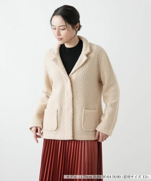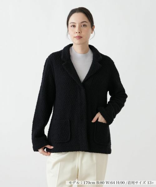 イタリア・フィレンツェ郊外に位置するニットのファクトリーブランド「BRUNO MANETTI」の上質なニットジャケット。ブークレ素材の豊かな表面感が特徴で、ふんわりとした暖かみのある印象を与えます。ベーシックなテーラードカラーは、どんなインナーとも合わせやすく、上品なスタイルを演出。フロントは一つボタンで、すっきりと着こなせます。両サイドには、丸みのあるパッチポケットが配され、デザインのアクセントになっています。程よい着丈で、スカートにもパンツにも合わせやすく、カジュアルからきれいめまで幅広いコーディネートにマッチ。一枚羽織るだけで、着こなしに季節感と優しさをプラスするアイテムです。