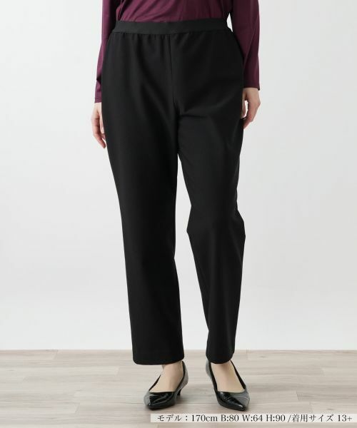 裏起毛素材で抜群の暖かさと快適な穿き心地を両立する、冬に嬉しいスリムパンツ。ポリエステルを主体にポリウレタンを混紡することで、優れたストレッチ性を実現いたしました。優しい肌触りの裏起毛が、冷え込む季節も心地よく体を包み込みます。ウエストはゴム入りで、ダブルゴム仕様により窮屈感なく快適にお召しいただけます。ご自宅で手洗いできるウォッシャブル仕様で、日常のお手入れも簡単。フィット感がありながらも、脚のラインをすっきりと見せてくれる美しいシルエットが魅力です。大人の女性の多様なライフスタイルに寄り添う、機能性と暖かさを兼ね備えた一本です。