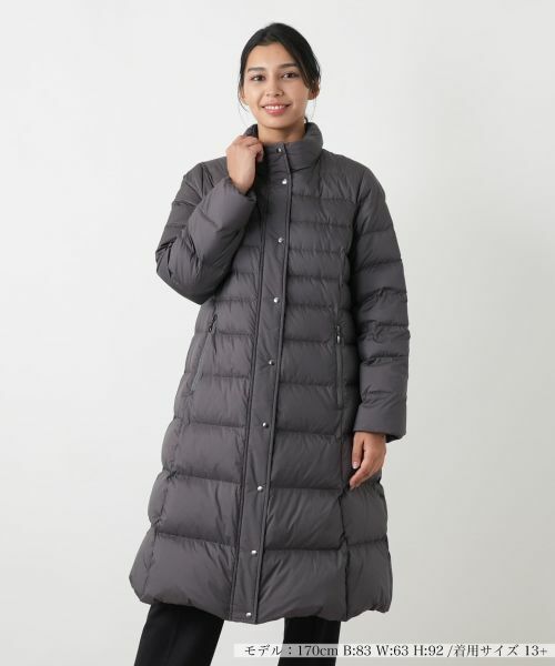 すっきりとしたスタンドカラーが特徴の、ロング丈アウターです。光沢を抑えたマットな質感の生地と、シックなカラーが、洗練された大人の雰囲気を醸し出します。フロントはスナップボタンとファスナーの二重構造で、風を通しにくい仕様。ウエストから裾にかけて緩やかに広がるAラインシルエットが、女性らしいエレガンスを添えます。左右の脇にはファスナー付きのポケットが配されており、機能性も兼ね備えています。カジュアルながらも上品なデザインは、デイリーからきれいめなスタイルまで、幅広いコーディネートに活躍します。