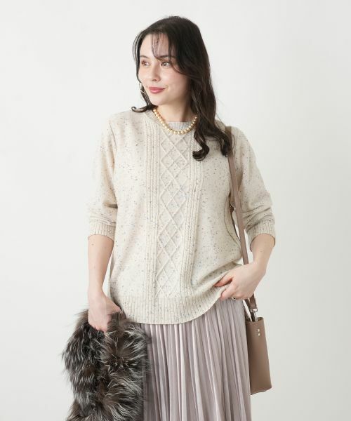 繊細で柔らかな肌触りの上質な素材を贅沢に使用したノーカラーセーター。しなやかな着心地ながらも、暖かさを保ち、冬の冷たい風から優しく守ります。シンプルな無地デザインに、中央のケーブル編みがアクセントを添え、立体感のある表情を演出。ノーカラーの丸首デザインは、デコルテラインを美しく見せ、上品な印象を与えます。シンプルながらも素材の上質さとデザインのこだわりが際立ち、長くご愛用いただけるタイムレスな一枚です。冬のデイリースタイルから、きれいめなお出かけまで、幅広いシーンで活躍するアイテムです。