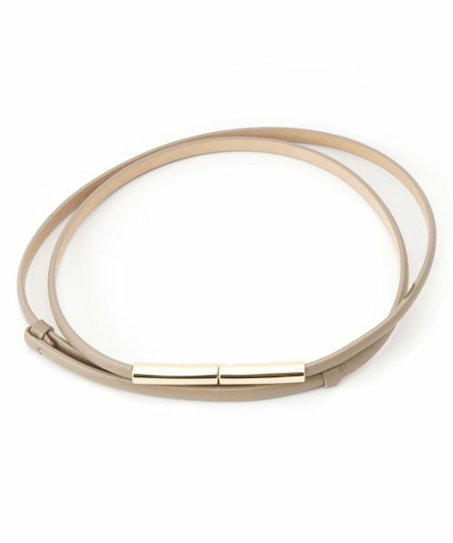 バックル付きの細いタイプのベルト。レリアンオリジナルデザインで、上品な雰囲気を演出します。ウエストマークとして、ワンピースやブラウスにプラスして、メリハリのあるシルエットを演出してください。