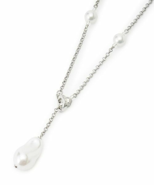 パール調のモチーフが上品な、ラリエットタイプのネックレス。胸元に繊細な輝きを添え、エレガントな印象を演出します。長さ調節が可能なので、様々なスタイリングに合わせてお楽しみいただけます。