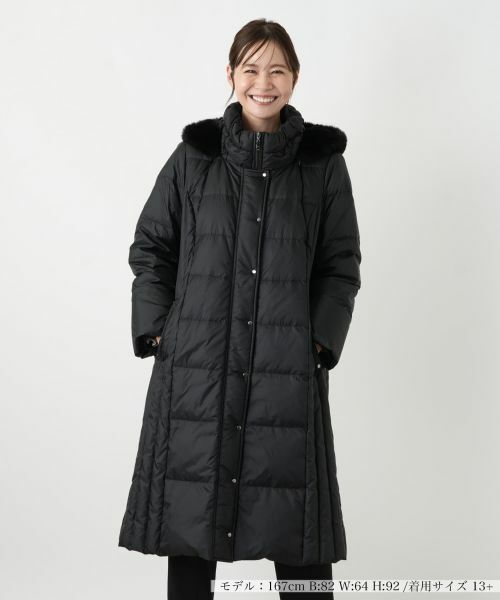 真冬の寒さにも対応する、エレガントなフーデッドダウンコート。フードは取り外し可能で、シーンに合わせてシンプルなスタンドカラースタイルも楽しめる2WAY仕様。サイドの切り替えがダウン特有の着膨れを抑え、すっきりと美しいAラインシルエットを実現します。フロントはファスナーとスナップボタンの二重構造、袖口には風の侵入を防ぐゴムを内蔵しているので防寒対策も万全です。