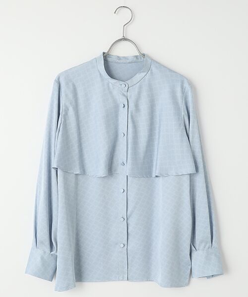 光沢のあるサテン地のプリントブラウスです。ノスタルジックなダイヤ柄で、長めのヨークが揺れてモダンな雰囲気で着用いただけます。<素材><<オリジナル素材>>ポリエステル糸を使用した薄手のサテンで作られたオリジナルプリント素材。上品な微光沢と柔らかで滑らかな風合いが特徴です。無地のようにも見えるニュアンスある色味で表現されたダイヤ柄のプリントは優しい印象を与え、軽やかでエレガントなスタイルを演出し様々なシーンで活躍できるプリントです。