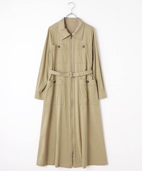 ポケットディテールがアクセントとなったワンピースです。フロントはファスナーのデザインで羽織りとしてもお使いいただけます。共地のベルトがポイントとなりスタイルアップした着こなしが叶います。