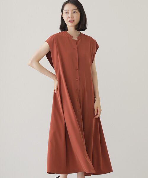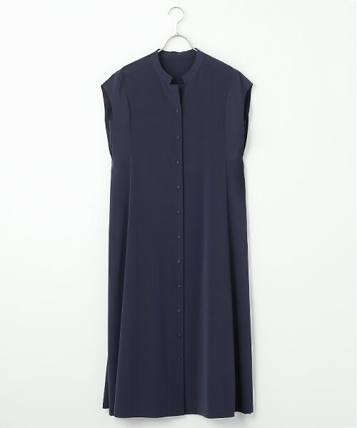 シワにならずストレッチ性もあり快適に着用できるワンピースです。少し落ちた肩は程よく腕をカバーしてくれて、程よくシェイプした高めのウエストラインはスタイルアップ効果もある上品な印象に仕上げています。デイリーにもお出かけにも幅広く着用して頂けます。<素材><<サステナブル素材>>トリアセテートとストレッチ性のあるポリエステルを合わせる事でシルクのような膨らみと風合いを持たせた素材です。シワにもなりにくく、上品な光沢感が特徴です。
