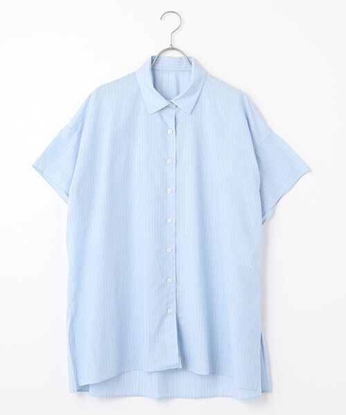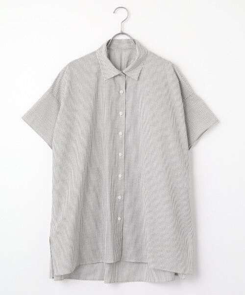 爽やかなストライプ柄と清涼感のある素材が魅力のシャツです。やや長めの着丈とバックギャザーがポイントとなっています。羽織りとしてもお使いいただけます。<素材><<機能素材・接触冷感>>綿の細番手と和紙を組み合わせた清涼感のある素材です。和紙は非常に軽く、麻に比べてシワになりにくいのが特徴です。また、生育が早く農薬や化学肥料を使わない為、環境に優しい魅力的な素材です。